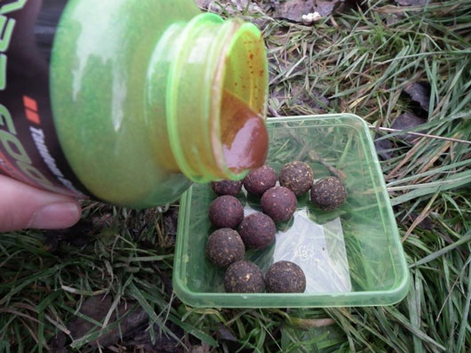 Pri správnom postupe nám vzniknú rovnomerne obalené boilies. Ak chceme boilies pokryť hrubšou vrstvou a tým predĺžiť účinok dipu, postup zopakujeme. Pre ľahšiu orientáciu si napíšeme na vrchnák použité príchute. Takto pripravené boilies značne odľahčí rybársku tašku a dúfam, že vám prinesie aj veľa zážitkov pri zdolávaní úlovku.