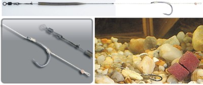vytvorený z tuhého monofilu Zero Memory ,tento stužený materiál nám napomáha k zaseknutiu ryby hneď po jej kontakte z nástrahou a to z dôvodu ťažšieho vypudzovania nasatej potravy. Háčik v tomto prípade sme použili sériu Super D´rig .Nadväzcový material sme pripojili pomocou slučky, ktorá nám umožní voľnejší pohyb celého systému.. Tento nadväzec sa najčastejšie používa s Pop–up mi,ale nebojte sa experimentovať aj s potápivými guličkami.