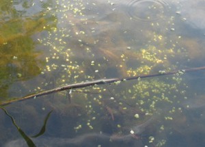 Vyskytujú sa tu kapry, ktoré môžeme rozdeliť do niekoľkých skupín. Môžeme ich deliť podľa tvaru. Tvar pripomínajúci divokú formu / týchto je viac/ a na rybničnú formu. Podľa šupín na lysce a šupináče.A prečo to píšem? Podarilo sa mi zdolať lysca ,ktorý tvarom pripomínal pôvodnú divokú formu ,to znamená .že za niekoľko generácií sa jeho telo prispôsobilo životu v prúdiacej vode a drsnejším podmienkam, ale geneticky nosilo vonkajšie znaky svojich predkov.