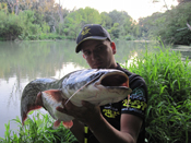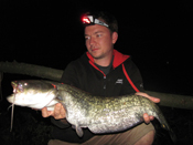 No omyl. Do rána sme už bez záberu. Ráno pri nás zastavuje auto Mestskej polície, prebehne kontrola rybárskych dokladov a sme upozornení na to, aby sme si dávali pozor, pretože v okolí bola videná puma. Zo začiatku si myslím, že si z nás robí pán policajt srandu, no myslí to vážne. Po jeho odchode začíname baliť veci a opäť sa sťahujeme. Je pred nami posledná noc. Cesta na nové miesto nám trvá asi 45 minút. Opäť všetko vybaliť a nachystať na noc. Už sme z toho vcelku unavení. Dúfam ale, že túto noc to už príde. Luboš je už mierne znechutený, takto si vraj tú sumčarinu nepredstavoval. Zatiaľ nemal ešte ani záber. To sa ale mení chvíľu po zotmení, keď zdoláva síce malého ale zato vydretého sumca. Rýchlo fotka a šup s ním naspäť do vody. Prút mu už nevyvážam, nechcem už robiť zbytočný hluk na vode. Niečo po polnoci registrujem záber zase ja. No po zaseknutí zisťujem, že sumec zašiel do niektorého z potopených stromov, ktorých je tu neskutočne veľa. Sadám do člna a idem skúsiť šnúru zo stromu vymotať. Keď držím šnúru, cítim na jej konci pekný ťah, ktorý bohužiaľ po pár minútach povoľuje a sumec je preč. Vraciam sa teda sklamaný na breh. Pri svitaní má Luboš ešte jeden záber a zdoláva sumca rovnakej veľkosti ako večer. Začíname baliť veci, lúčime sa s Malým Dunajom, ktorý nám ukázal asi svoju druhú tvár a odchádzame domov.