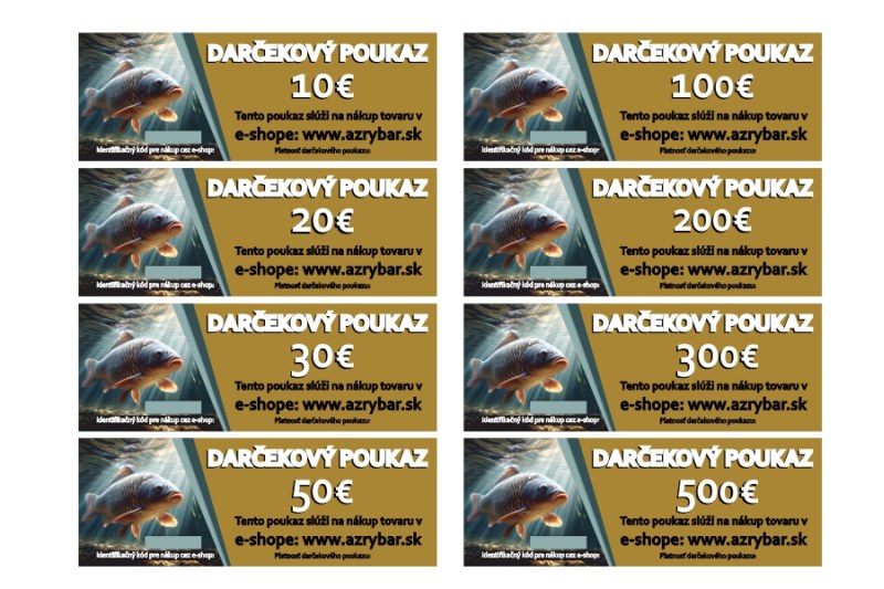 Neviete po čom túži srdce vášho rybára? Vieme aké náročné je trafiť sa mu do chuti. Presne pre tieto prípady sme pre vás pripravili darčekové poukážky. Stačí si vybrať požadovanú hodnotu poukážky a váš rybár si sám vyberie čo potrebuje.