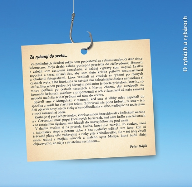 V knihe nájdete autorove zážitky, ktoré prežil sám aj so svojimi priateľmi na rybačkách po svete ako v Nórsku, Španielsku, Švédsku, Mongolsku a z tropických oceánov pri Maledivoch, Červenom mori a lososích riekach v Britskej Kolumbií v Kanade.
