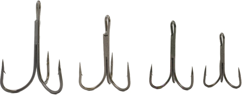 Sumcový trojháčik z veľmi pevného drôtu, veľkosti 2/0-8/0.