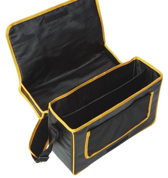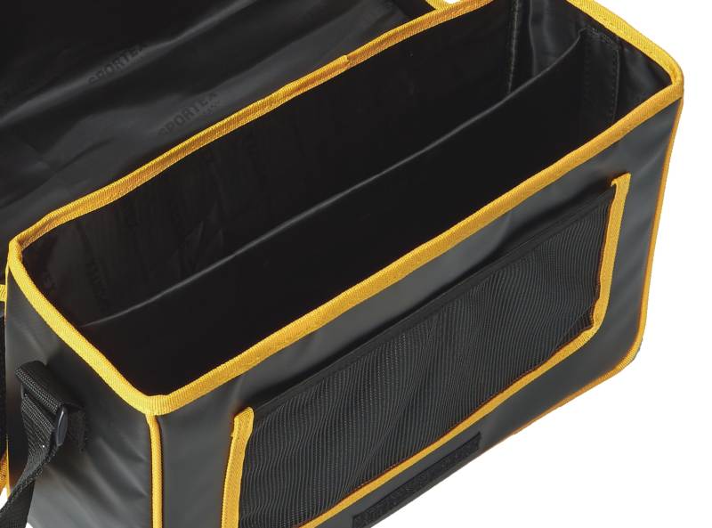 Kvalitné rybárske tašky s odolným PVC povrchom chránia vaše vybavenie pred vlhkosťou. PVC povrch pred konkurenciou vyniká tým, že ho jednoducho očistíte. Hlavná priehradka je rozdelená na 2 boxy, do ktorých si uložíte krabice s nástrahami. Na vonkajšej strane sa nachádza sieťované vrecko na uloženie ostatného rybárskeho príslušenstva. Samozrejmosťou je pevný popruh na rameno.