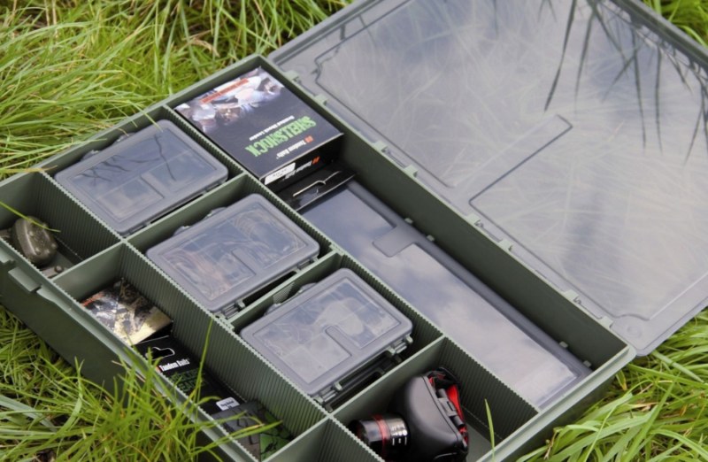 Špeciálny Carp box pre príslušenstvo, bižutériu atď., dodáva sa s boxom na nadväzce a so šiestimi menšími krabičkami, odolný plast, odolné proti nárazu, silné závesy, trvalé zatvorenie, nastaviteľná veľkosť priehradiek, 36,5 x 30 x 6 cm
